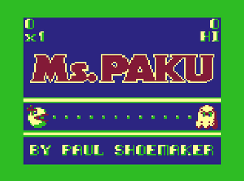 Ms Paku was written in 6809 assembly language for your Tandy Color Computer 1, 2 or 3 and TRS-80 MC-10. Joystick required for the CoCo versions. Many thanks to Invis, Paul F. and Paul T. for their gracious help and input.